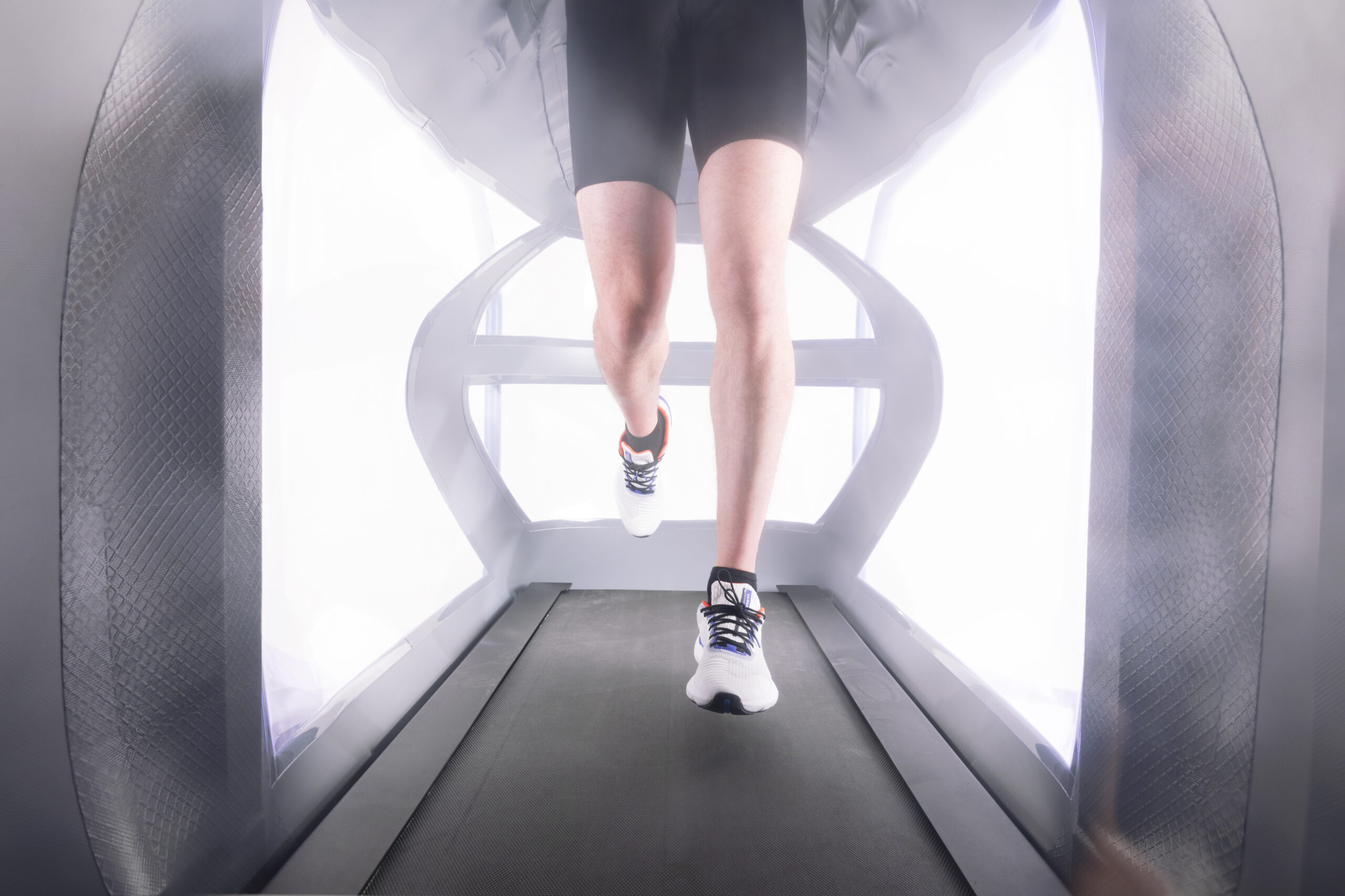 Das BTL R-Force Schwereloslaufband nutzt ein präzise steuerbares luftdruckbasiertes Entlastungssystem, um das Körpergewicht des Patienten partiell oder vollständig zu reduzieren. Der Patient wird in eine dichte, luftgefüllte Entlastungshülle eingeführt, die durch Druckänderung den Auftrieb erzeugt. Über elektronisch gesteuerte Ventile lässt sich der Luftdruck in Echtzeit regulieren, sodass das effektive Körpergewicht auf dem Laufband kontrolliert von 0 % bis 100 % reduziert werden kann. Dies ermöglicht ein schonendes, gelenkschonendes Training selbst bei stark eingeschränkter Belastbarkeit oder postoperativen Patienten.