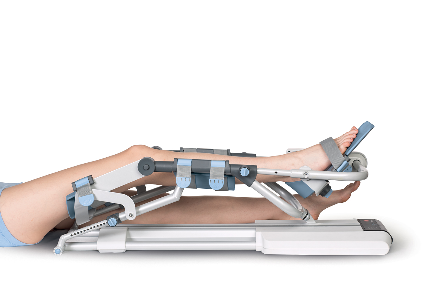 Das Kniegelenk wird durch die Schiene kontinuierlich in Beugung und Streckung geführt – ohne aktive Muskelarbeit des Patienten. Dadurch entstehen folgende Vorteile: