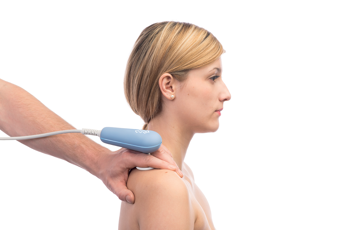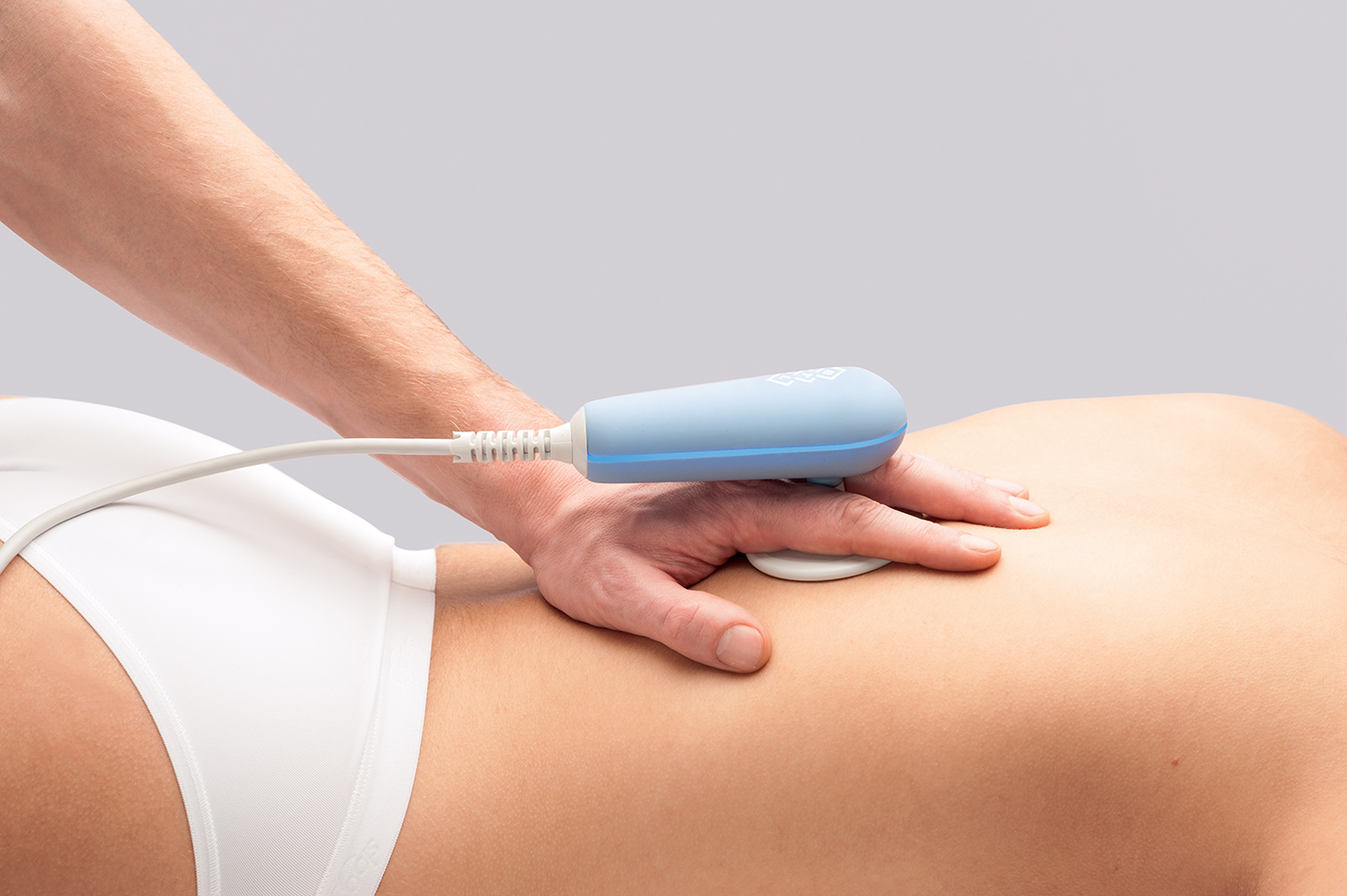 Die Anwendung erfolgt kontaktlos oder mit leitfähigem Gel, je nach Gerätekonzept.